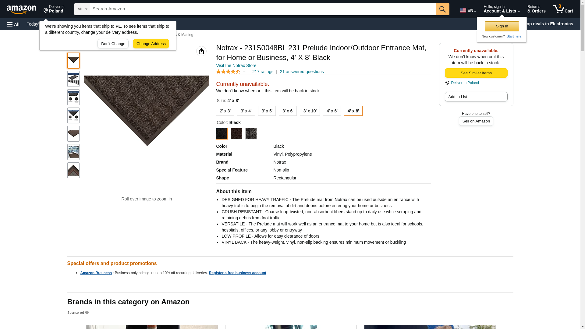 Notrax - 231S0048BL 231 Prelude Indoor/Outdoor Entrance Mat, for Home or Business, 4' X 8' Black
