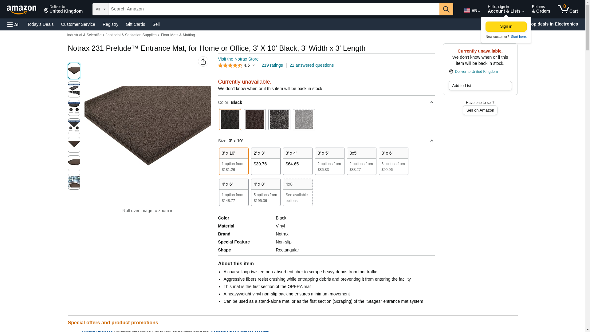 Notrax 231 Prelude™ Entrance Mat, for Home or Office, 3' X 10' Black, 3' Width x 3' Length