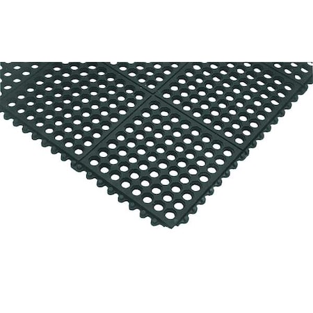 | Feature | Price For: Each Color: Black Edges: (4) Interlocking Standards: ASTM C1028-96, ASTM D3884-01, ASTM D412, ASTM D2240-02, OSHA Code 1910-144 Matting Series Compatability: Cushion-Ease(R) Mats, 551 M.D. Ramp System(R) Item: Interlocking Drainage Mat Color: Black Length: 5 ft. Width: 3 ft. Thickness: 3/4" Size of Drainage Holes: 0.875" dia. Mat Ramp Material: No Ramp |