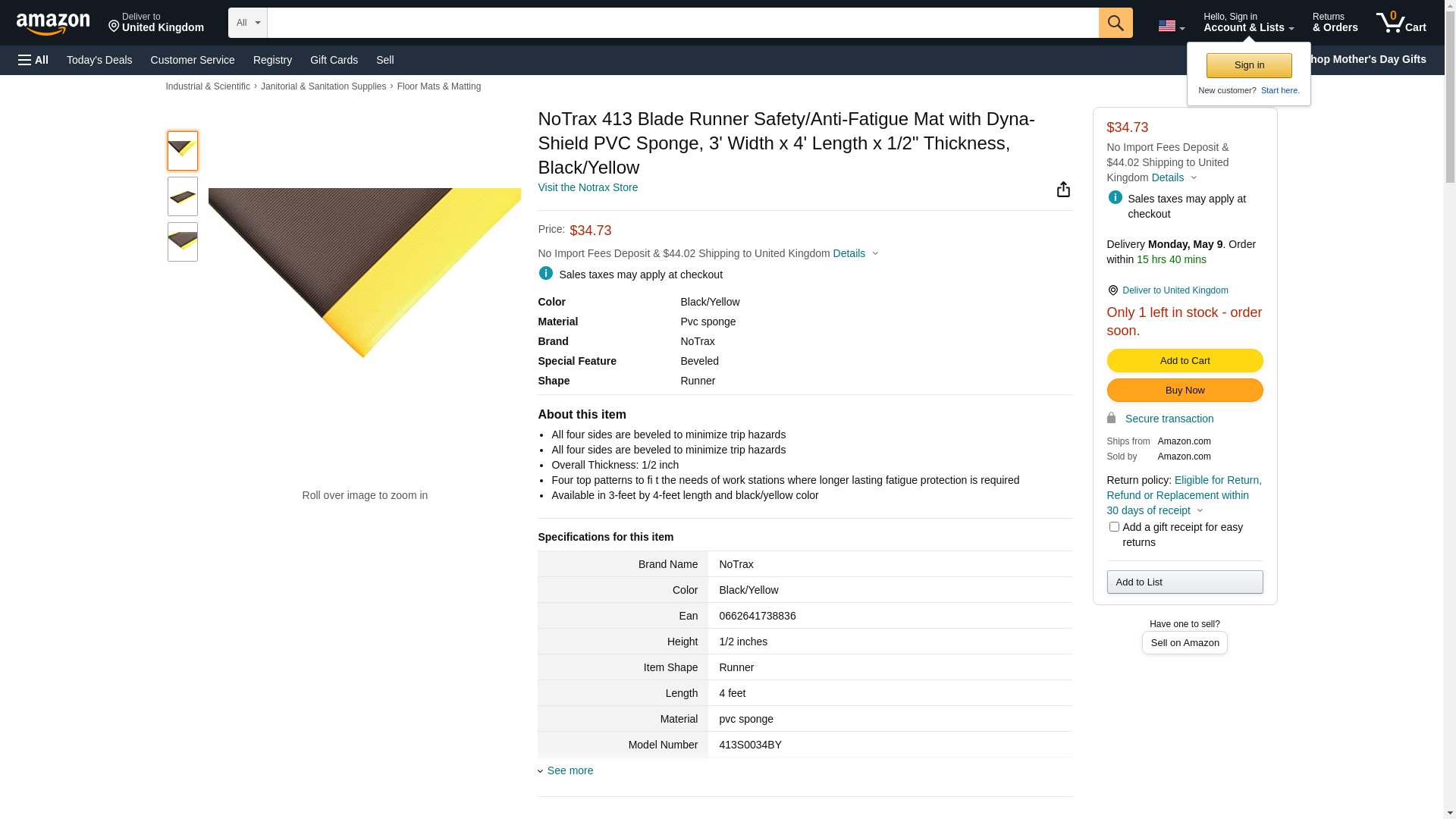 - Available in 3-feet by 4-feet length and black/yellow color