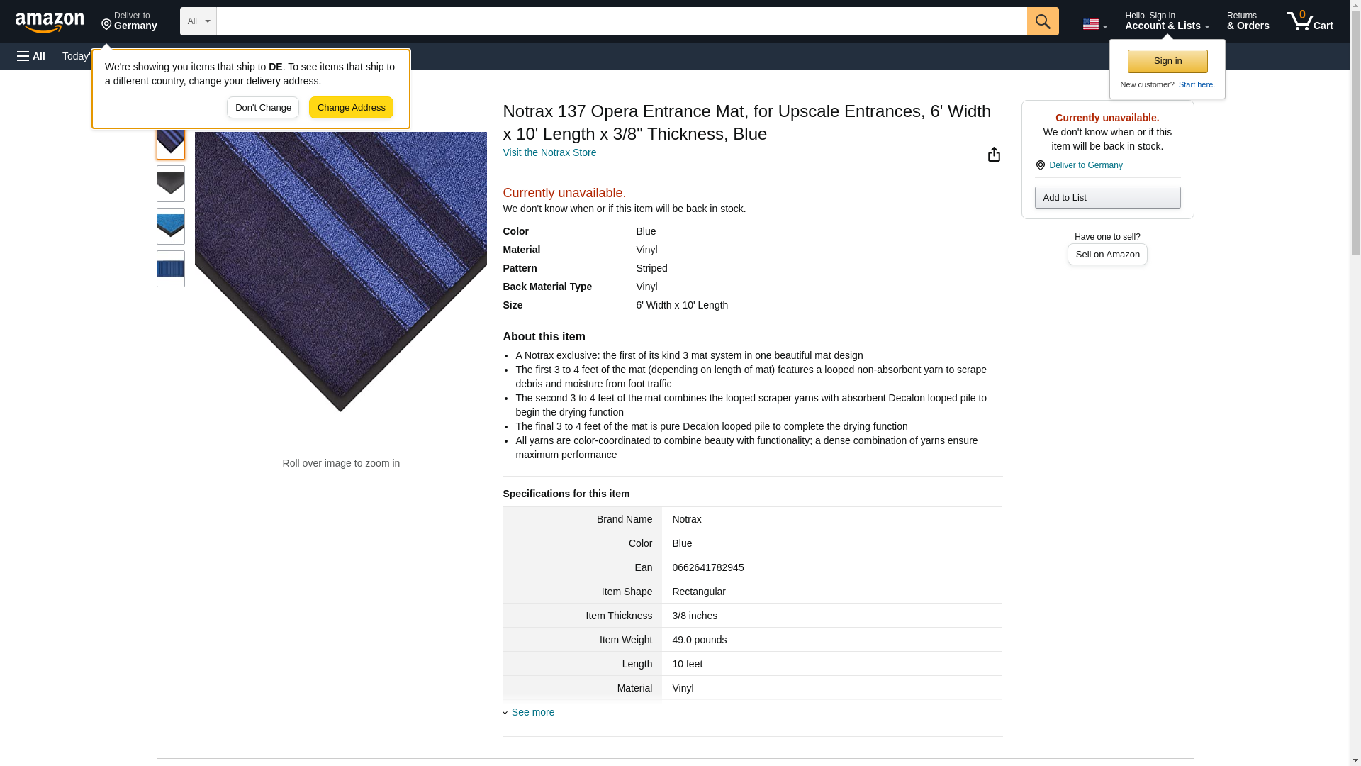 Notrax 137 Opera Entrance Mat, for Upscale Entrances, 6' Width x 10' Length x 3/8" Thickness, Blue