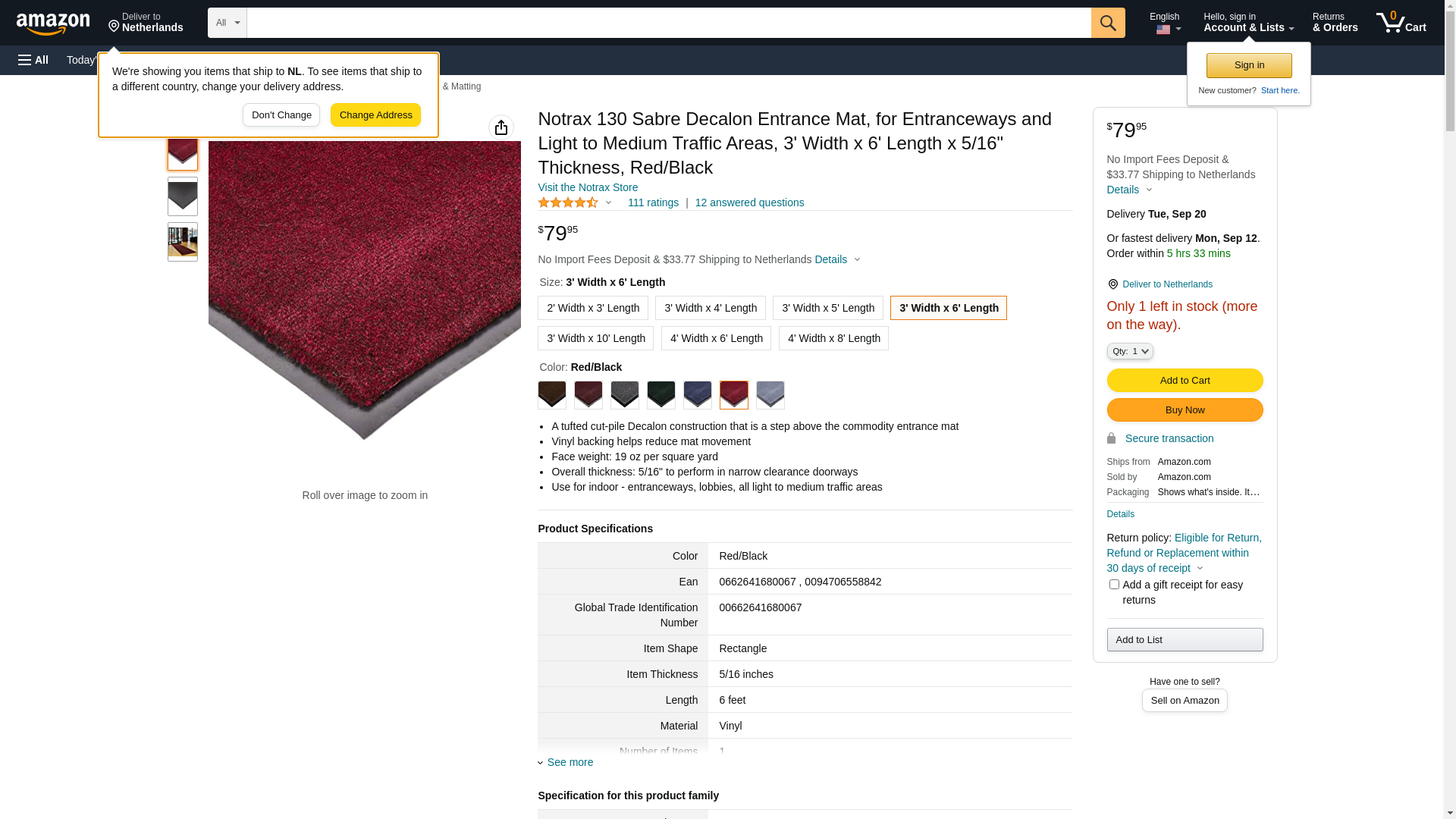 Notrax 130 Sabre Decalon Entrance Mat, for Entranceways and Light to Medium Traffic Areas, 3' Width x 6' Length x 5/16" Thickness, Red/Black