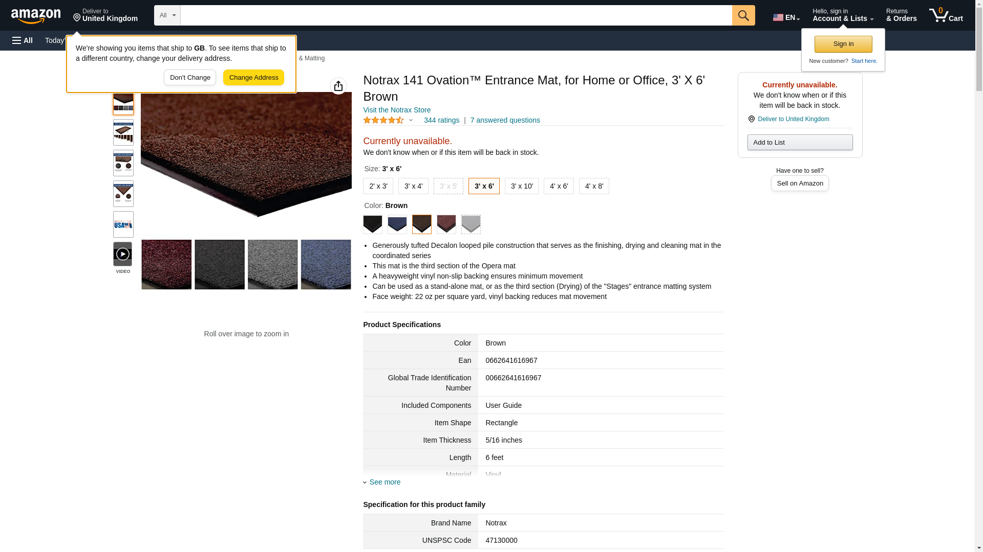 Notrax 141 Ovation Entrance Mat, for Home or Office, 3' X 6' Brown
