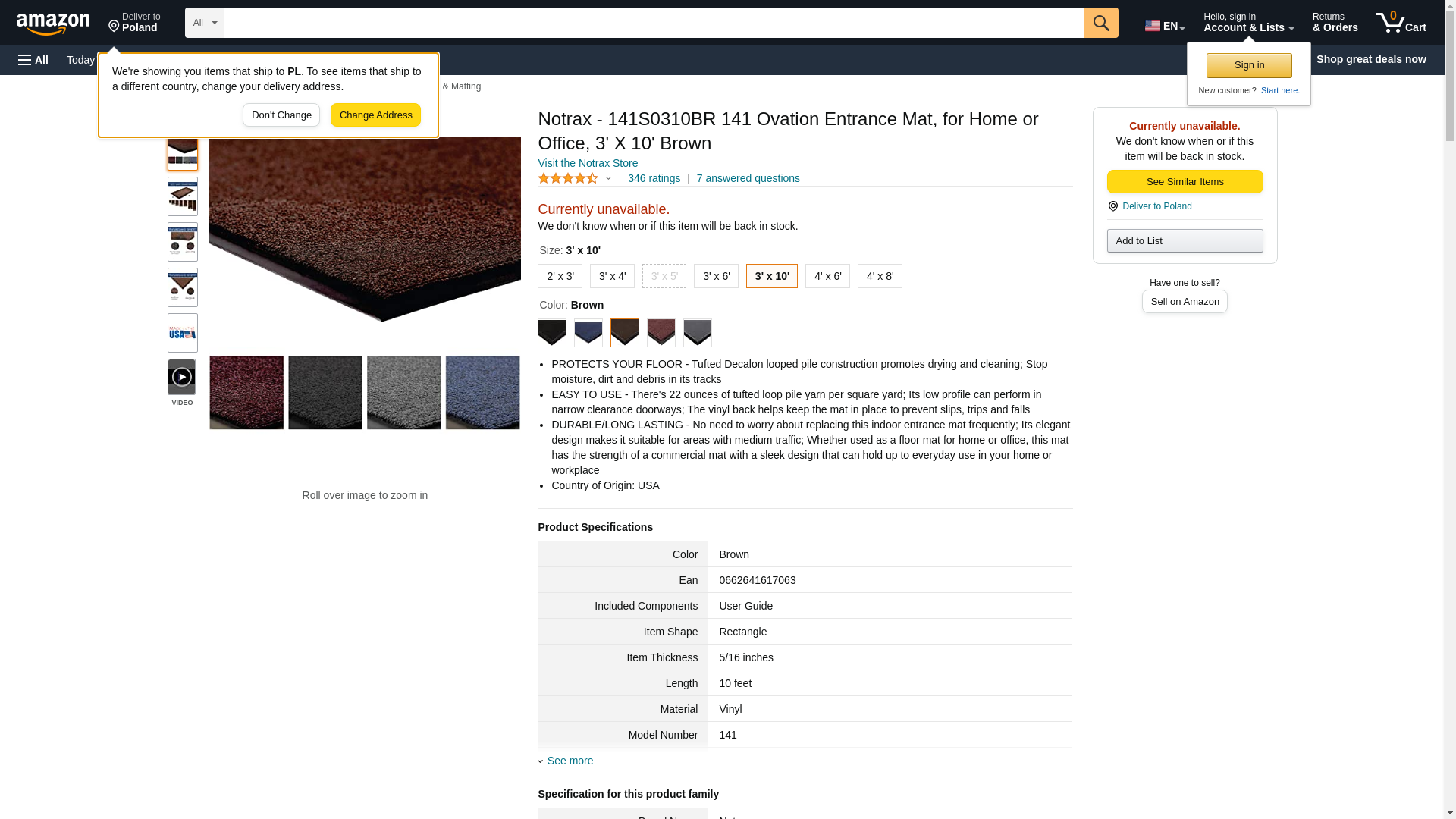 Notrax - 141S0310BR 141 Ovation Entrance Mat, for Home or Office, 3' X 10' Brown