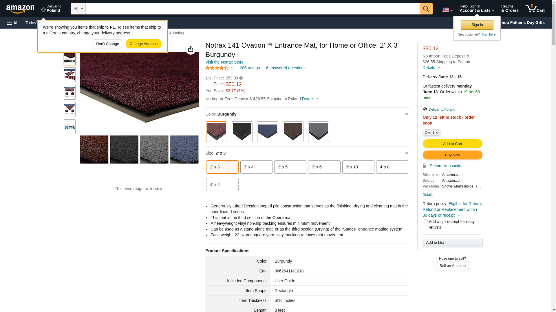 Notrax - 141S0036BD 141 Ovation Entrance Mat, for Home or Office, 3' X 6' Burgundy