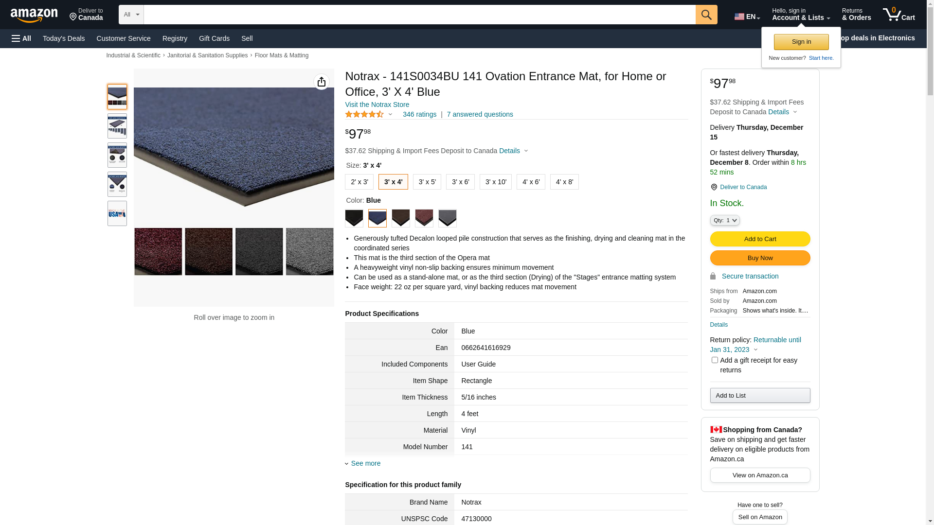 Notrax - 141S0034BU 141 Ovation Entrance Mat, for Home or Office, 3' X 4' Blue