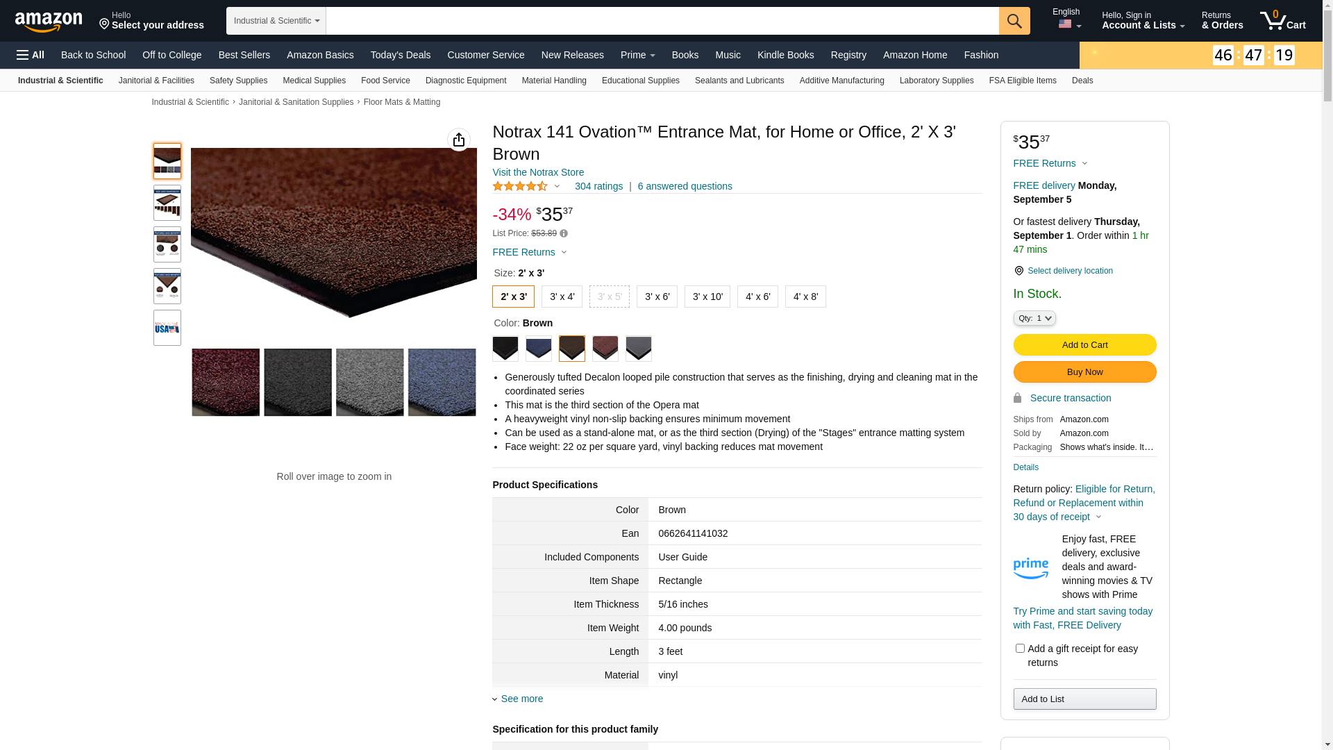 Notrax - 141S0034BR 141 Ovation Entrance Mat, for Home or Office, 3' X 4' Brown