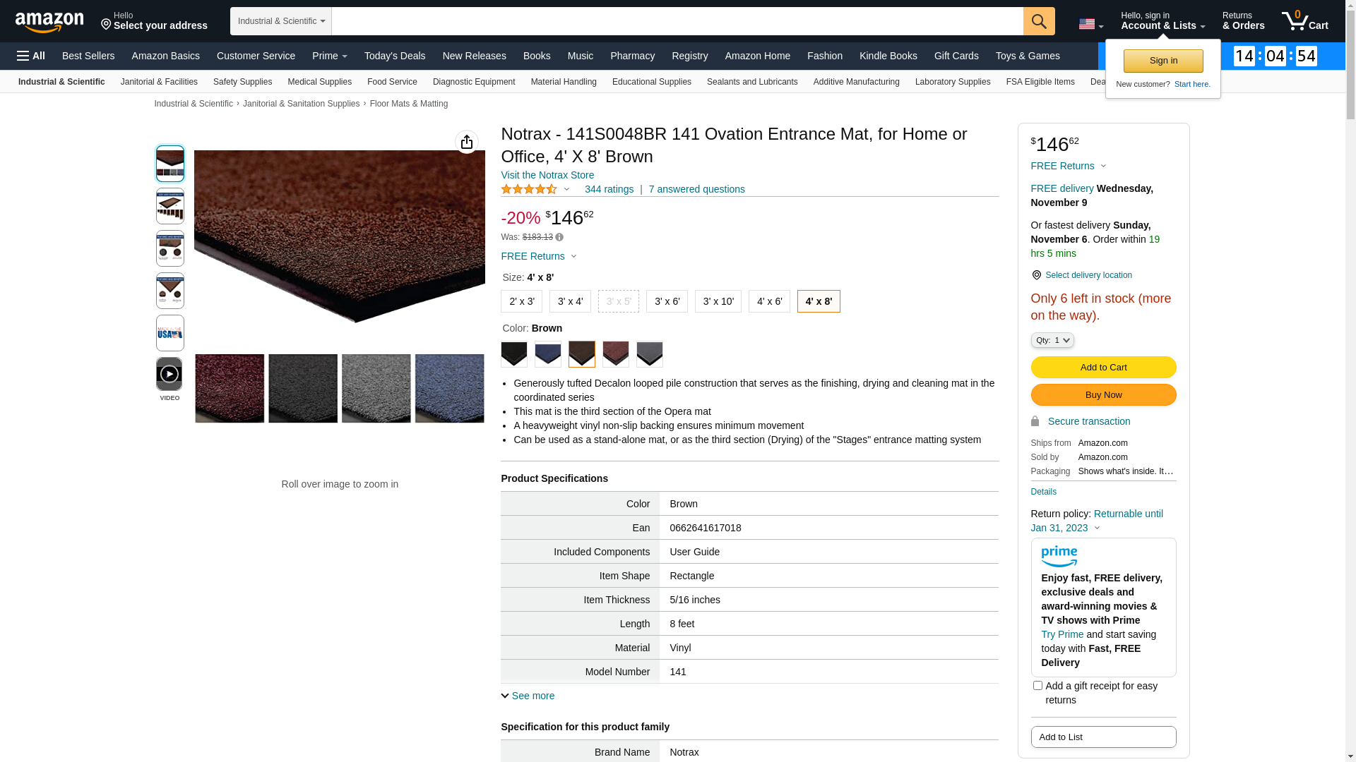Notrax - 141S0046BR 141 Ovation Entrance Mat, for Home or Office, 4' X 6' Brown