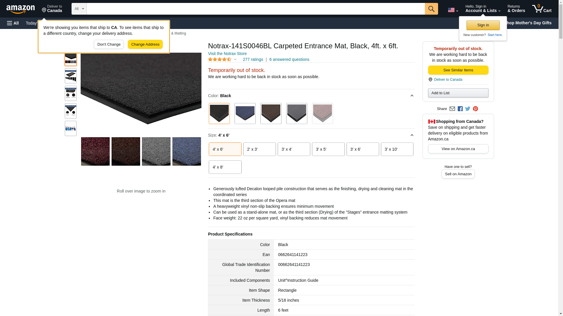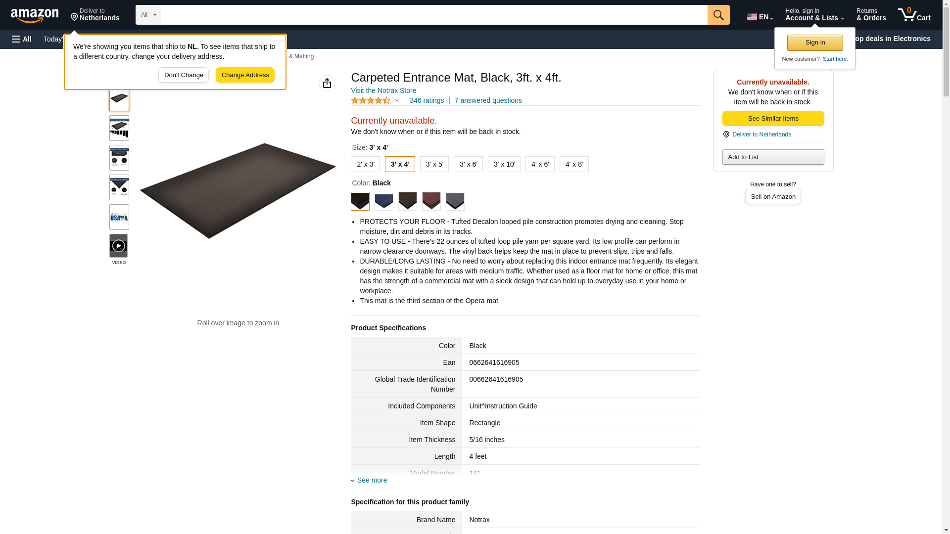 Notrax-141S0046BL Carpeted Entrance Mat, Black, 4ft. x 6ft.