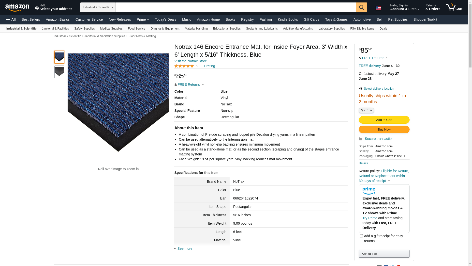 Notrax 146 Encore Entrance Mat, for Inside Foyer Area, 3' Width x 6' Length x 5/16" Thickness, Blue