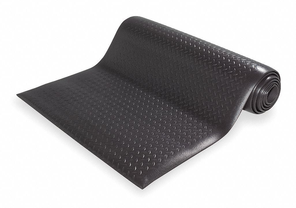 | Feature | Price For: Each Mat Shape: Rectangle Edges: Beveled Brake Fluid Resistant: No Antimicrobial: No Antifatigue: Yes Fire Resistant/Fire Retardant: Not Fire Resistant or Retardant Standards: ASTM C1028-96, ASTM D3884-01, ASTM D412, ASTM D1004 Mat Electrical Resistance: Electrical Properties Not Tested Mat Surface Pattern: Diamond Plate Thickness: 1/2" Width: 3 ft. Length: 60 ft. |