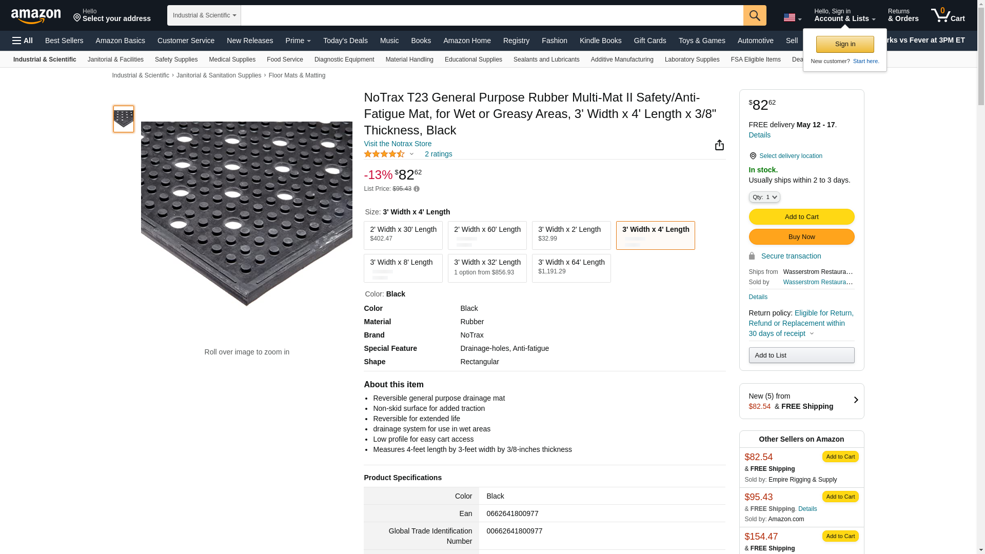 NoTrax T23 General Purpose Rubber Multi-Mat II Safety/Anti-Fatigue Mat, for Wet or Greasy Areas, 3' Width x 4' Length x 3/8" Thickness, Black