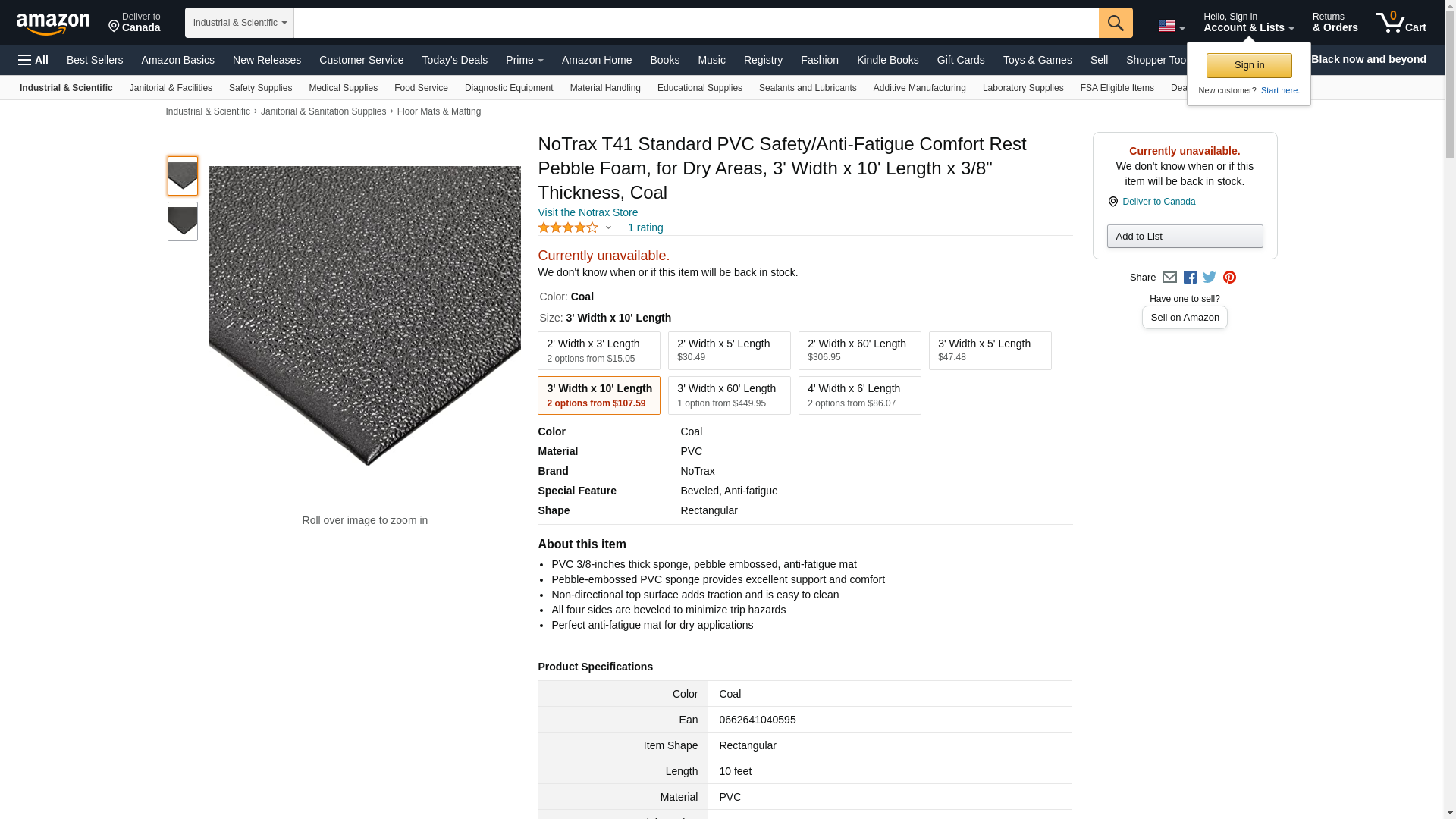 - PVC 3/8-inches thick sponge, pebble embossed, anti-fatigue mat