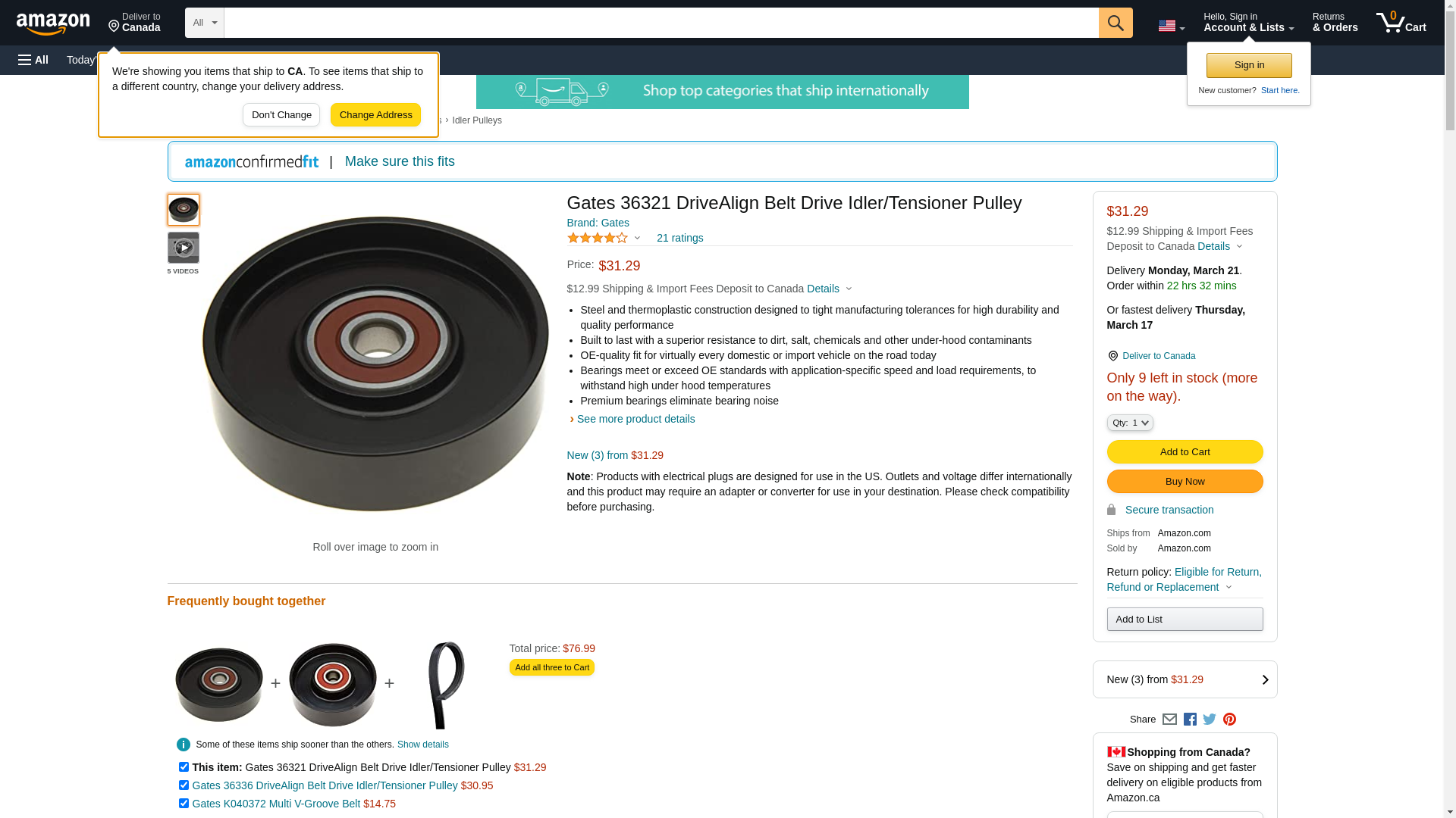 | Feature | Gates DriveAlign(R) Idler Pulleys 36321 (ONE PER PKG) (36321) |