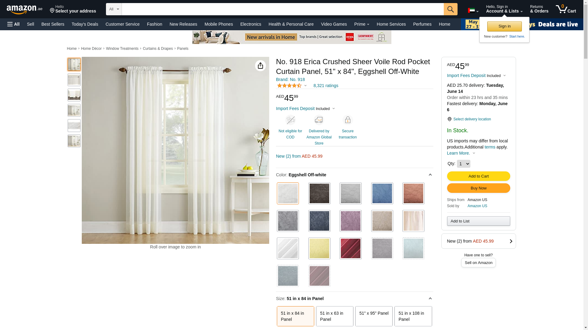 No. 918 Erica Crushed Sheer Voile Rod Pocket Curtain Panel, 51" x 84", Eggshell Off-White