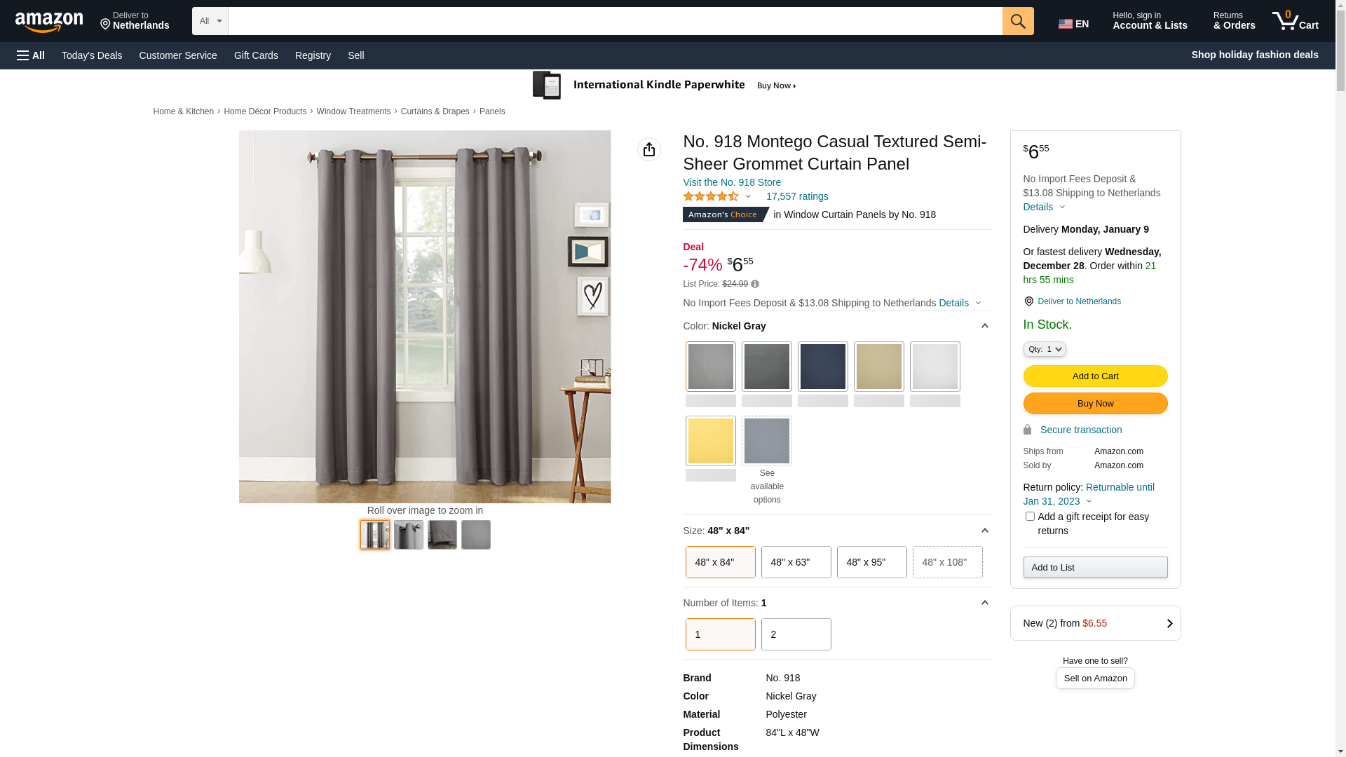 No. 918 Montego Casual Textured Semi-Sheer Grommet Curtain Panel