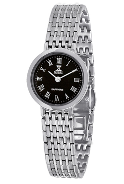 Nobel Watch N 7109 L Stainless Steel Ladys Watch Black Dial with Roman Numerals Swiss Movement Sapphire Crystal Wate