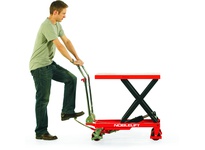 The TF 300lb to 2,200lb capacity, manual single-scissor lift table is one of our most popular entry-level, manual scissor lifts. Whether you're doing lifting and positioning work, handling pallets, working with parts in containers, or transporting loads, work-positioning lift tables are designed to improve worker productivity, while reducing the potential for working injuries. High quality steel construction, chrome plated handle, easy rolling casters with non-marking polyurethane wheels, double brakes foot pedal, overload protection system, and a supreme quality German design leak-proof hydraulic pump.