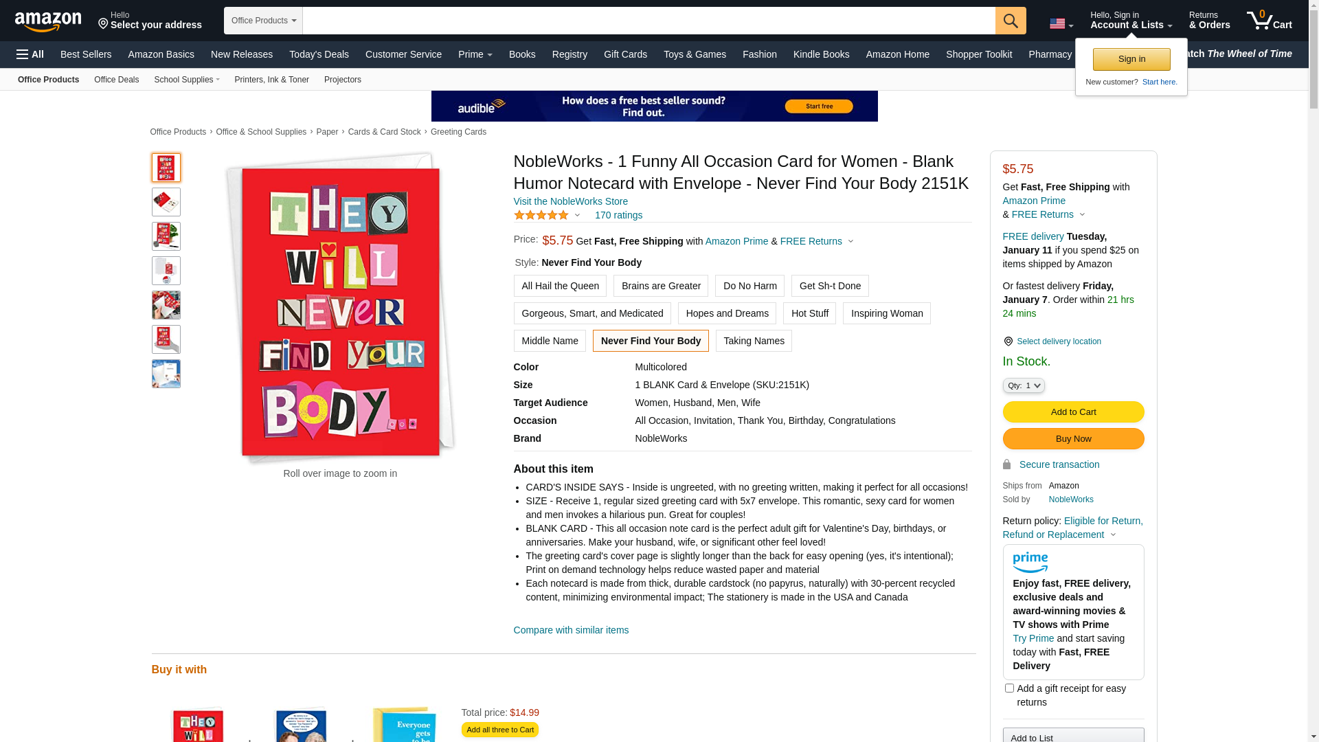 NobleWorks, Never Find Your Body - Funny Blank Card with Envelope - Romantic Adult Greeting Card 2151K: Maxedbuy.com
