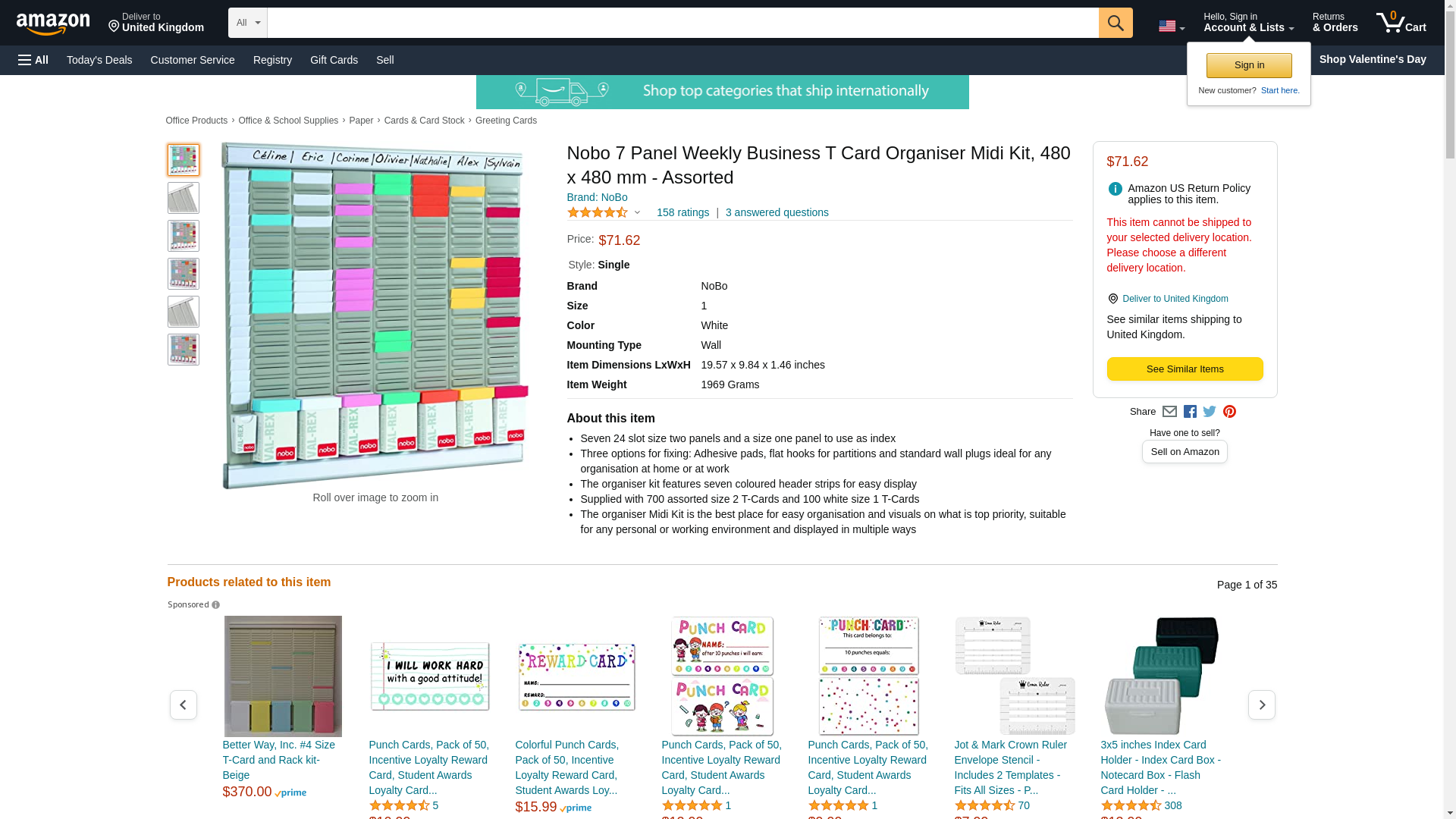 Nobo 7 Panel Weekly Business T Card Organiser Midi Kit, 480 x 480 mm - Assorted
