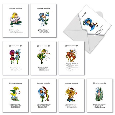 M2377TYG Floral Rascals: 10 Assorted Thank You Note Cards Featuring Sassy Old Fashioned Children Combined with Sweet Poetry, w/White Envelopes.