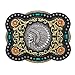 - VINTAGE LOOK - Surrounded by a traditional rope and starburst dot trim for an authentic cowboy look, the buckle also features scalloped edges and measure 4" x 3.25"