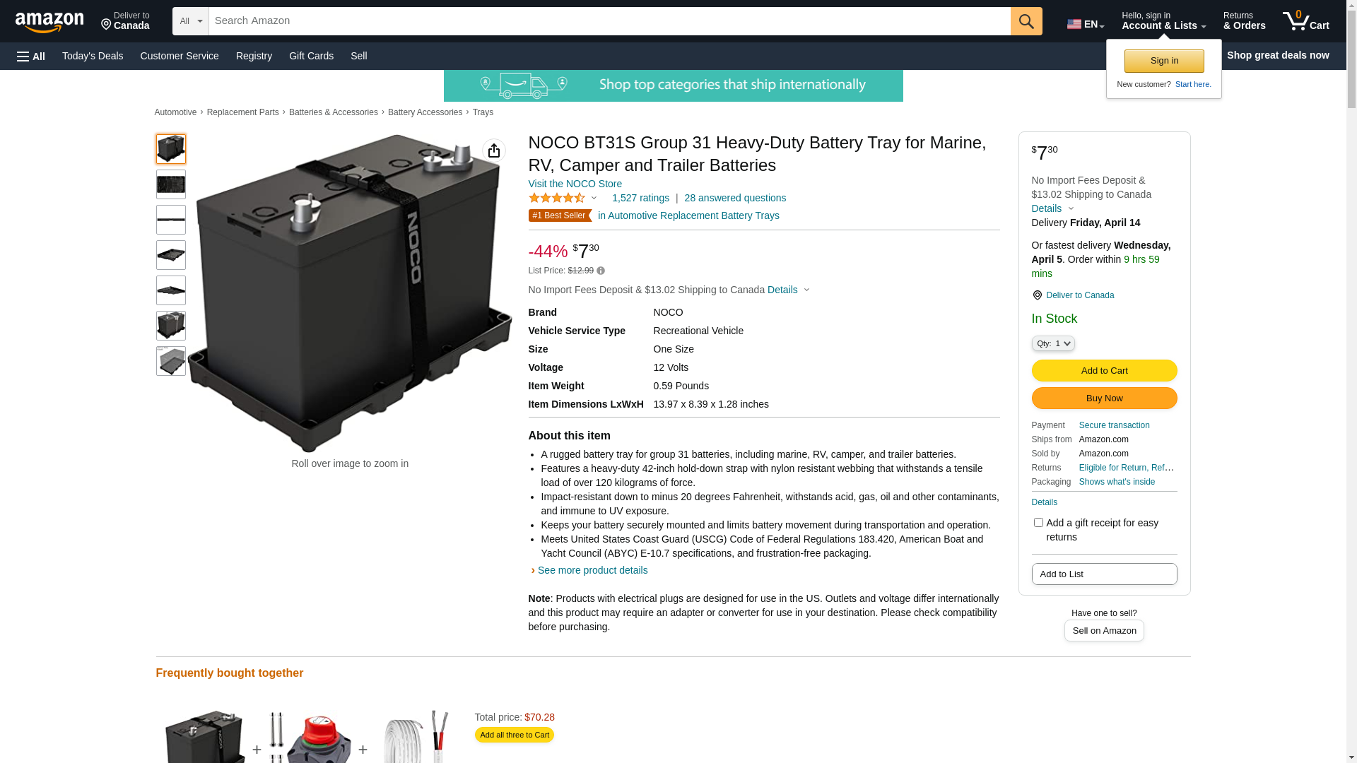 NOCO BT31S Group 31 Heavy-Duty Battery Tray for Marine, RV, Camper and Trailer Batteries
