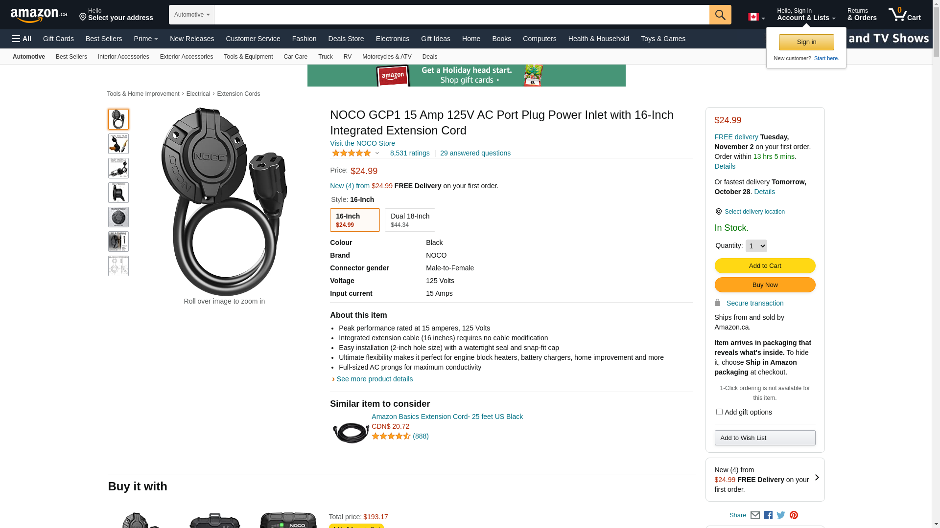 - NOCO AC 13A Port/Plug w/Ingrated Extension Cable - 125V