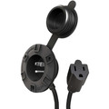 - AC Port Plug - A 125-volt power inlet socket with an integrated 16-inch outdoor extension cord for a car, boat, marine, truck, trailer, pickup, RV, industrial and electrical applications.