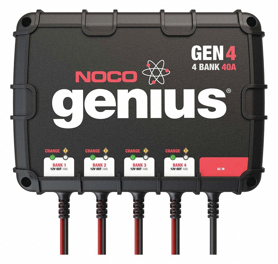 NOCO Genius GEN4, 4-Bank, 40-Amp (10-Amp Per Bank) Fully-Automatic Smart Marine Charger, 12V Onboard Battery Charger and Battery Maintainer