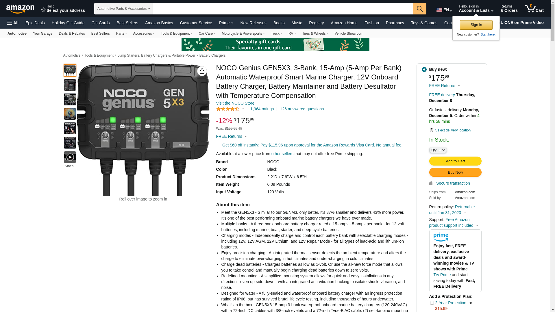 | BatteryJunction.com | NOCO-GEN5X3 | 1 | 1 | 1 @ $199.95 | |