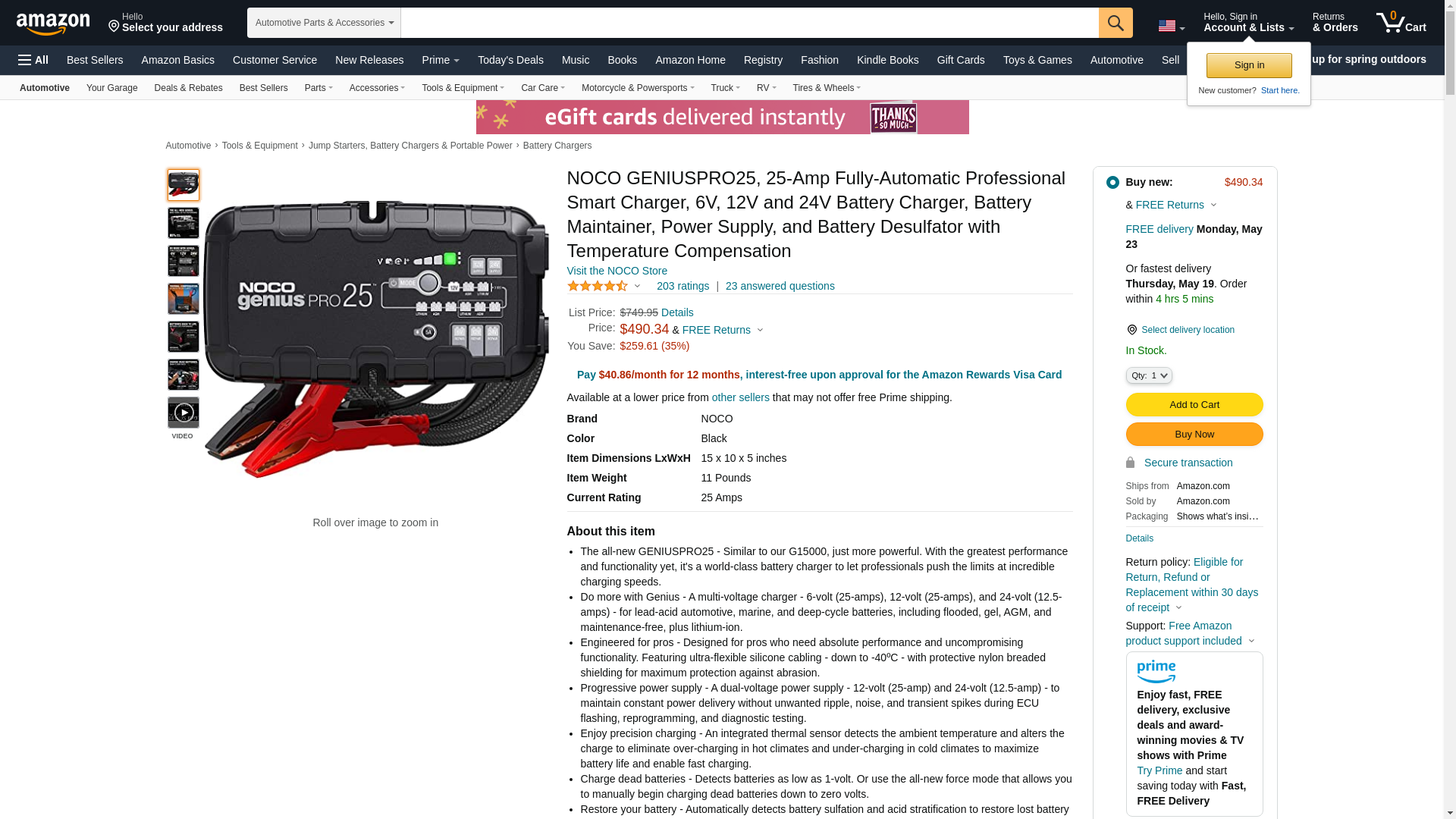 | BatteryJunction.com | NOCO-GENIUSPRO25 | 1 | 1 | 1 @ $599.95 |