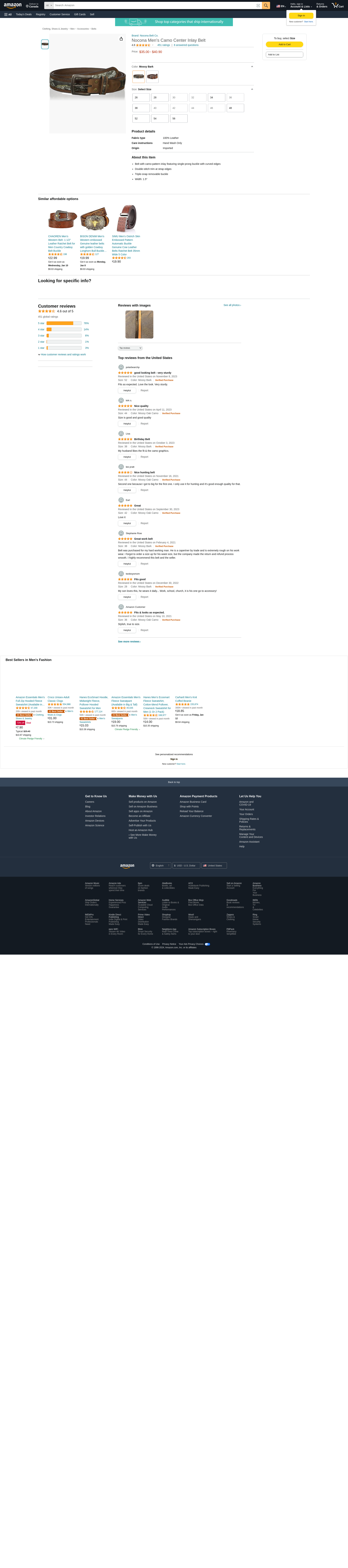 Nocona Belt Co. Men's Center Inlay, Mossy Bark/Camo, 48