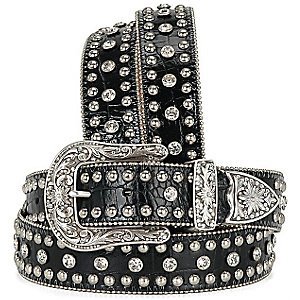 Nocona Belt N3451001-XL 1.5 in. Womens Rhinestone Studded Croc Print Leather Belt, Black - Extra Large