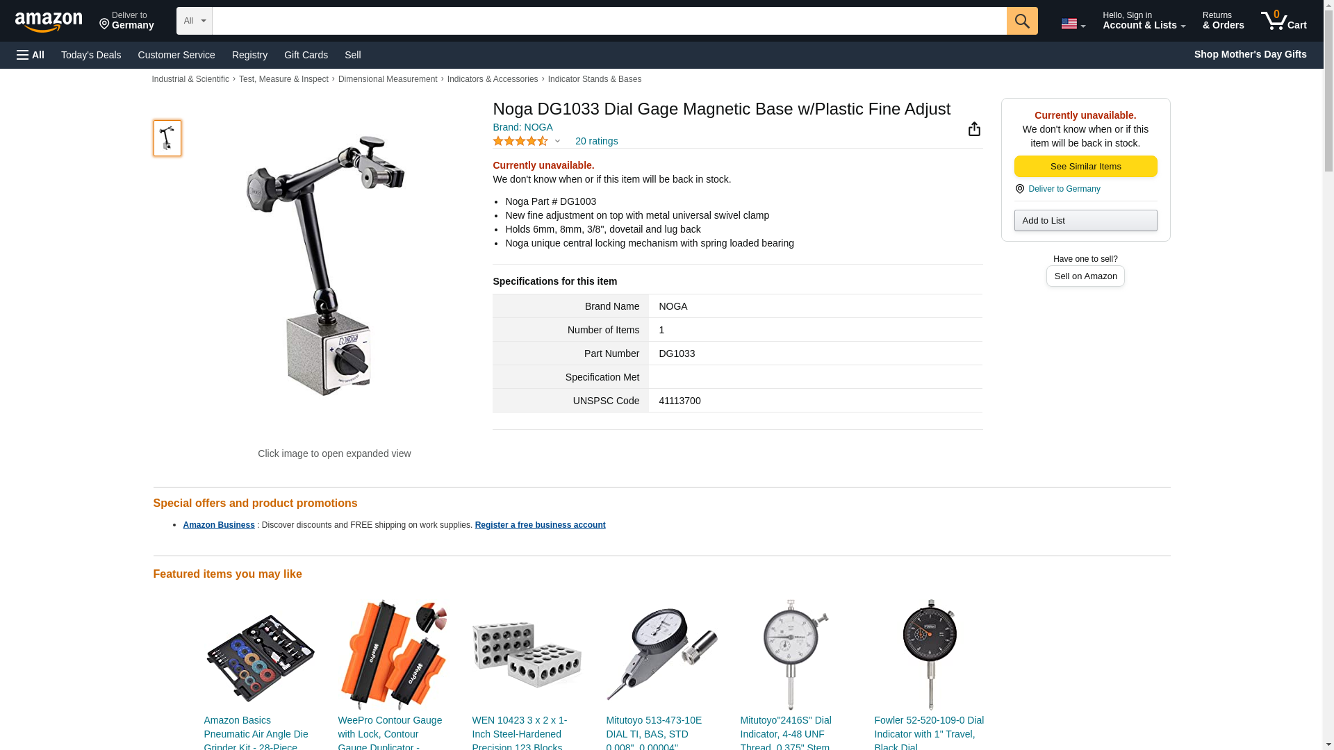 Noga DG1033 Magnetic Base 176 lb. Holding Power 4" Arm Dial & Test Indicator