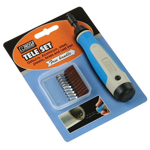 Deburrs Steel,Aluminum,Plastic,Brass And Cast Iron. Includes NogaGrip-3 Handle,S Holder,5 Pc. Handle,S10 Blades & 5 Pc. S20 Blades.