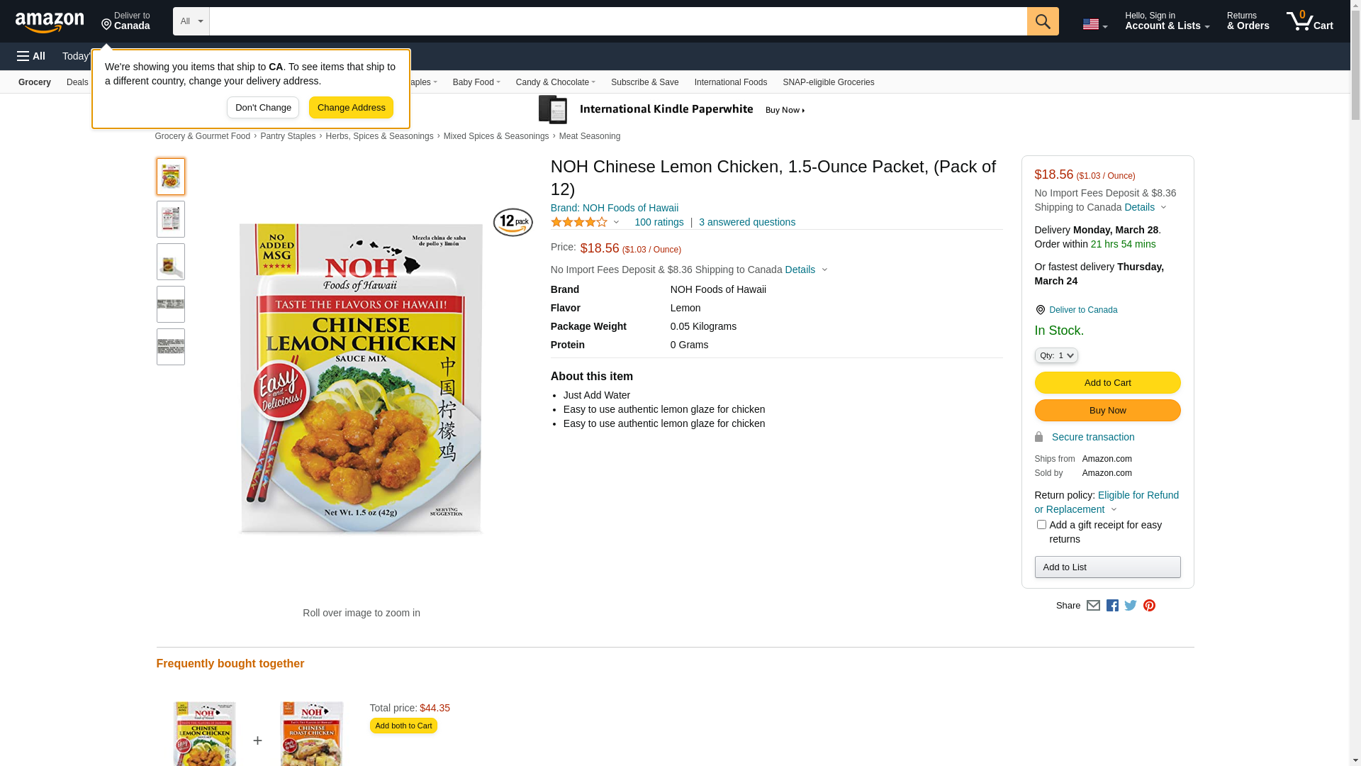 NOH Chinese Lemon Chicken, 1.5-Ounce Packet, (Pack of 12): Maxedbuy.com
