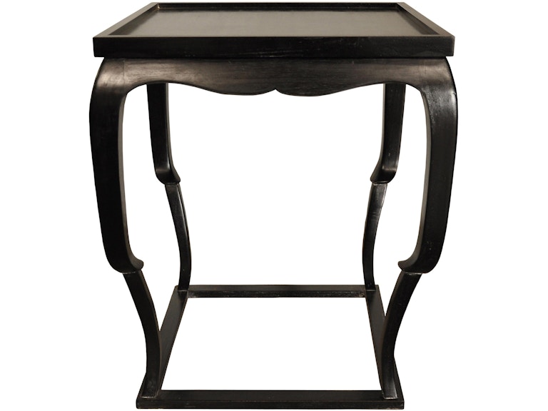 The Bellini Side Table's practical tray top is neatly bordered by a raised edge, but its geometry is balanced by a billowing outline beneath. Elegantly accented legs with a tapering saber curve frame the negative space below this side table, while the hand-rubbed black finish over the mahogany structure handsomely grounds it in shadowy richness.