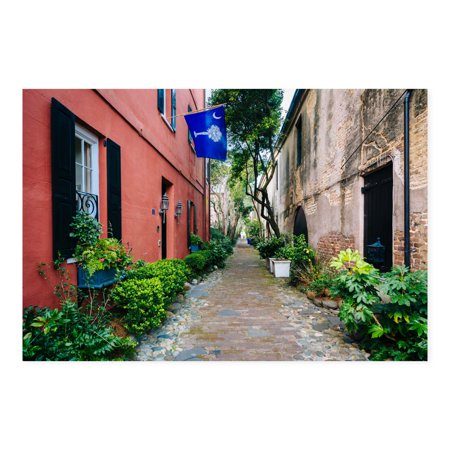 <ul> <li>Select from available sizes</li> <li>For indoor use</li> <li>Features a narrow street in Charleston</li> <li>Metal construction</li> <li>0.5-in. float mounting block for easy hanging</li> <li>Artwork by Jon Bilous</li> </ul>