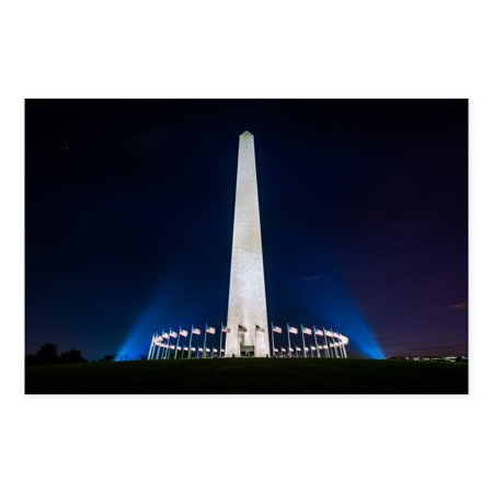 <ul> <li>Select from available sizes</li> <li>For indoor use</li> <li>Features a night view of the Washington Monument</li> <li>Metal construction</li> <li>0.5-in. float mounting block for easy hanging</li> <li>Artwork by Jon Bilous</li> </ul>
