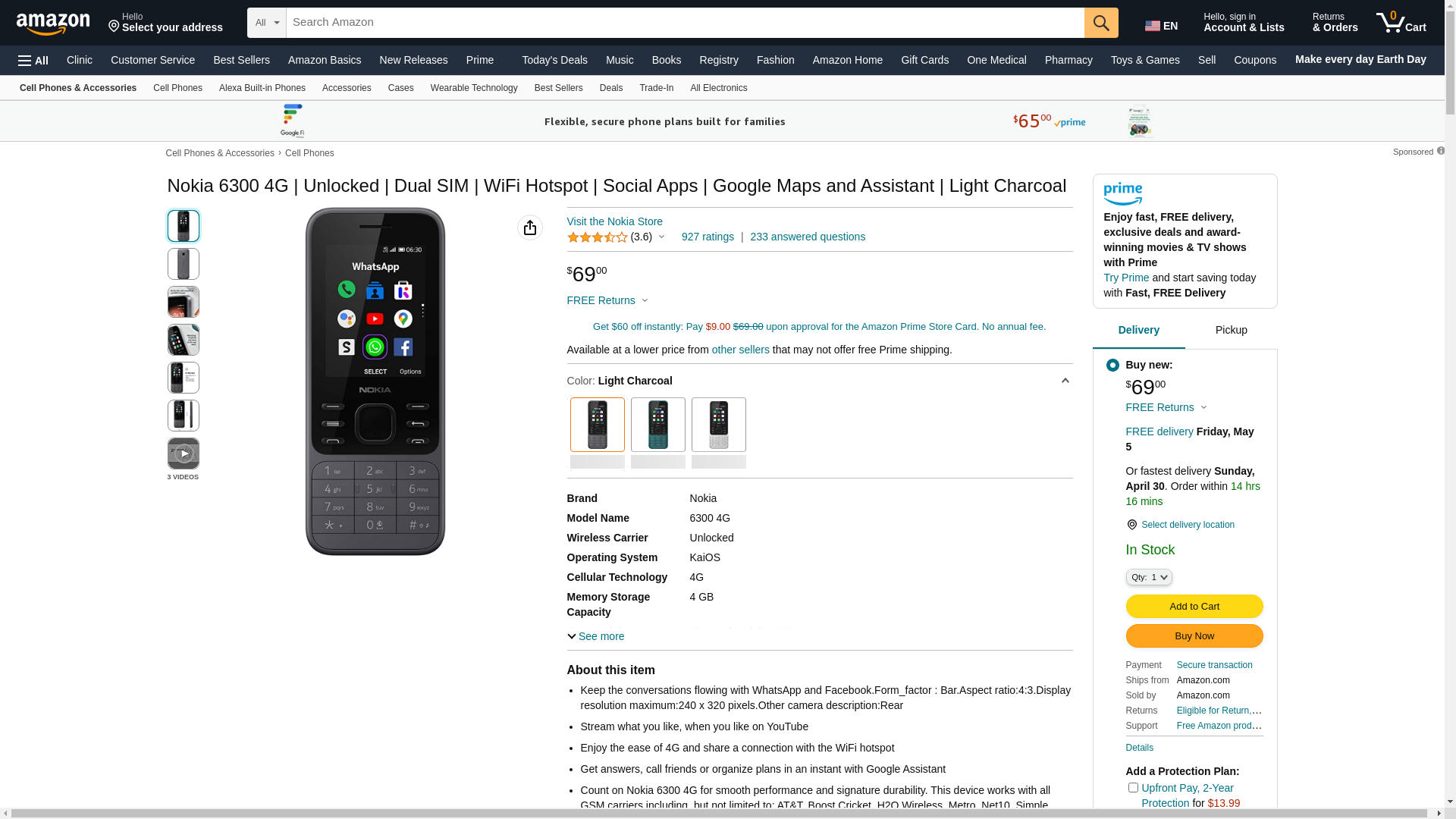 Nokia 6300 4G | Unlocked | Dual SIM | WiFi Hotspot | Social Apps | Google Maps and Assistant | Light Charcoal