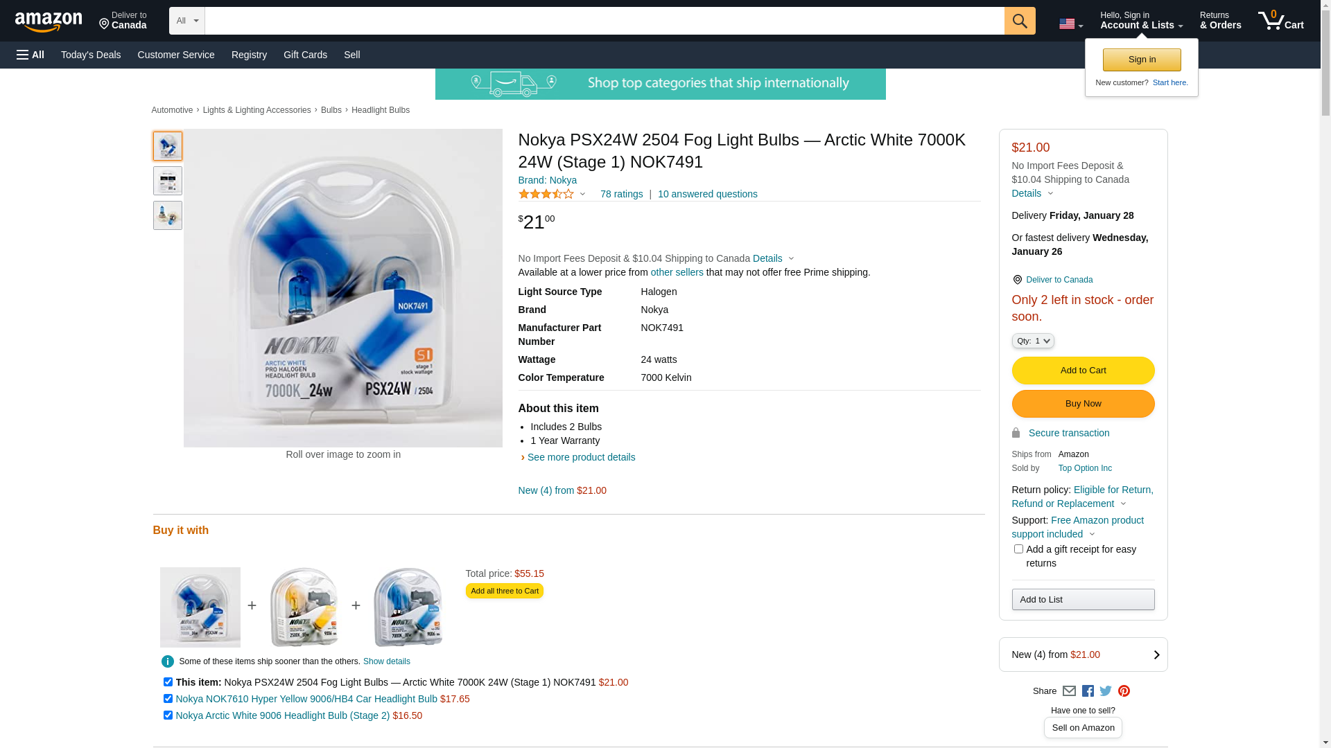 Nokya PSX24W 2504 Fog Light Bulbs — Arctic White 7000K 24W (Stage 1) NOK7491