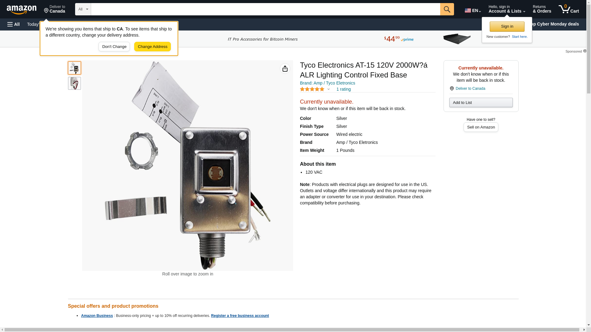 Tyco Electronics AT-15 120V 2000W ALR Lighting Control Fixed Base
