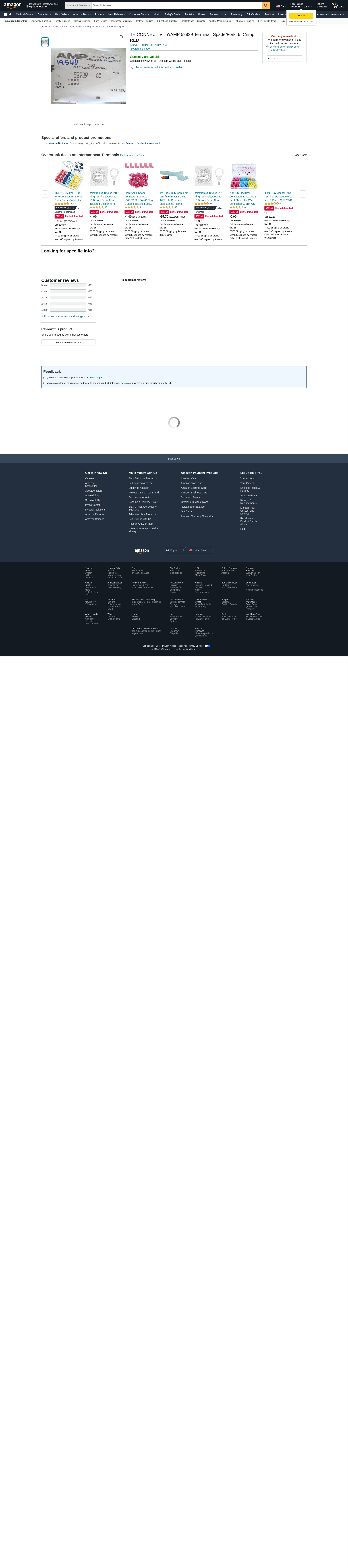 TE Connectivity 52929 AMP; TERMINAL; SPRING SPADE; 22-16AWG; RED; STUD SIZE 6 (1000 pieces)