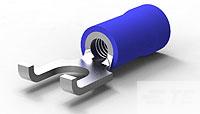 | Feature | <b>Price For:</b> Pack of 100 <b>Manufacturer</b>: TE Connectivity <b>Product Category</b>: Terminals <b>RoHS</b>: <b>Brand</b>: TE Connectivity / AMP <b>Product</b>: Screw Terminals <b>Type</b>: Spade <b>Stud / Tab Size</b>: # 8 <b>Wire Gauge</b>: 16 AWG - 14 AWG <b>Insulation</b>: Insulated <b>Color</b>: Blue <b>Termination Style</b>: Crimp <b>Contact Plating</b>: Tin <b>Contact Material</b>: Copper <b>Insulation Material</b>: Vinyl <b>Length</b>: 19.02 mm |