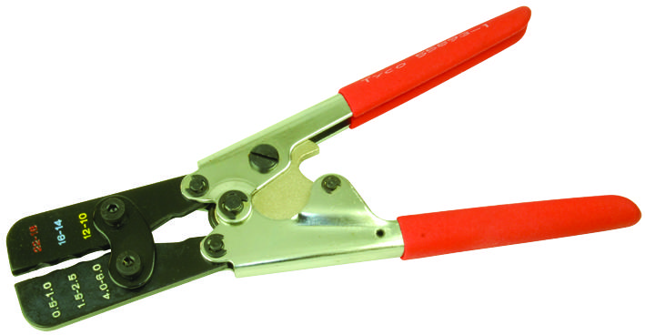 TE Connectivity 55893-1 Crimper; Ratchet; 22-10 AWG; Heat-Shrink Ring-Tongue, Spade, 250 Series FASTON
