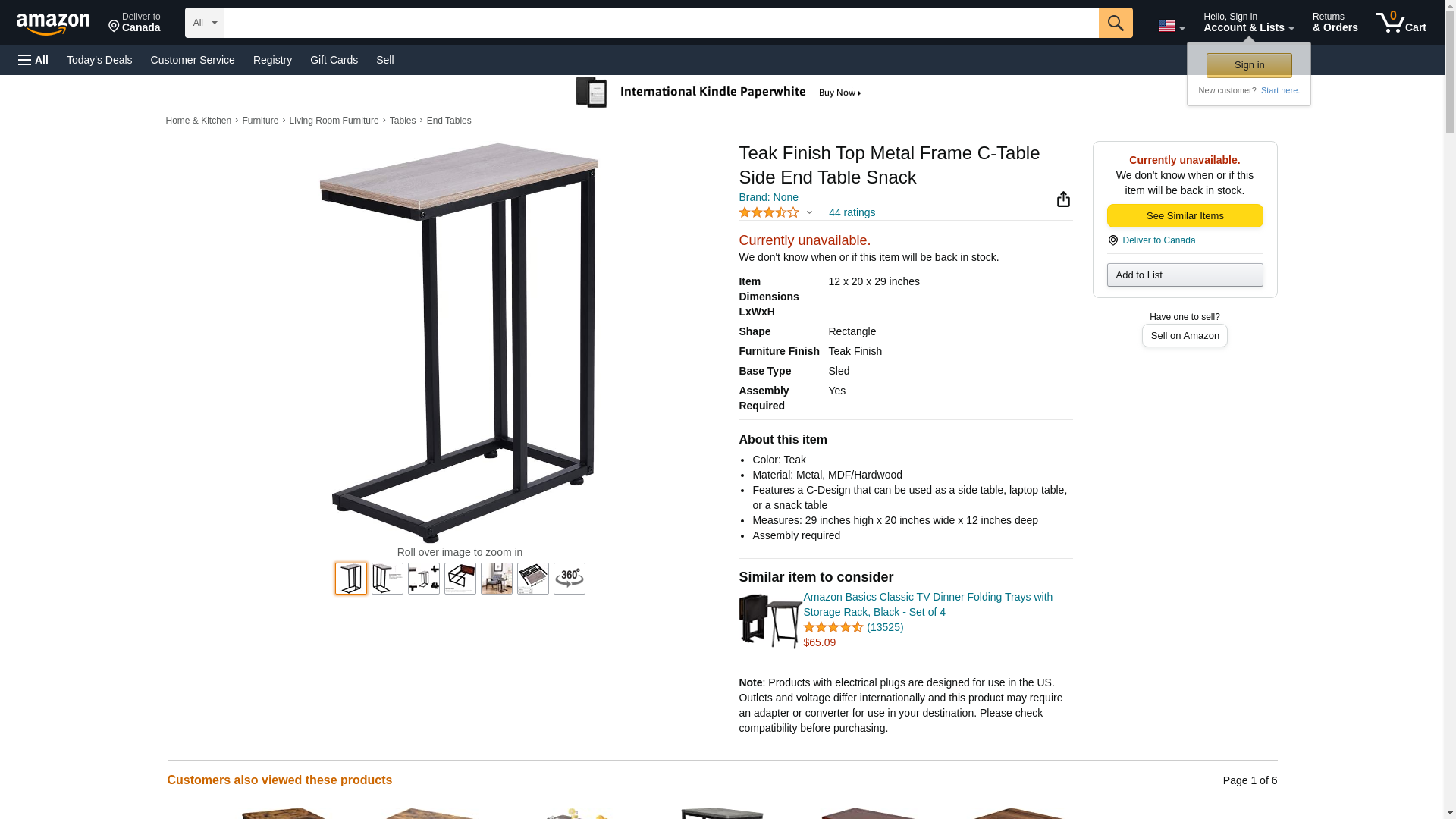 This Teak Finish Top Metal Frame C-Table Side End Table Snack is a great addition to your home decor. Features a C-Design that can be used as a side table, laptop table, or a snack table. Measures: 29 inches high x 20 inches wide x 12 inches deep. Assembly required.