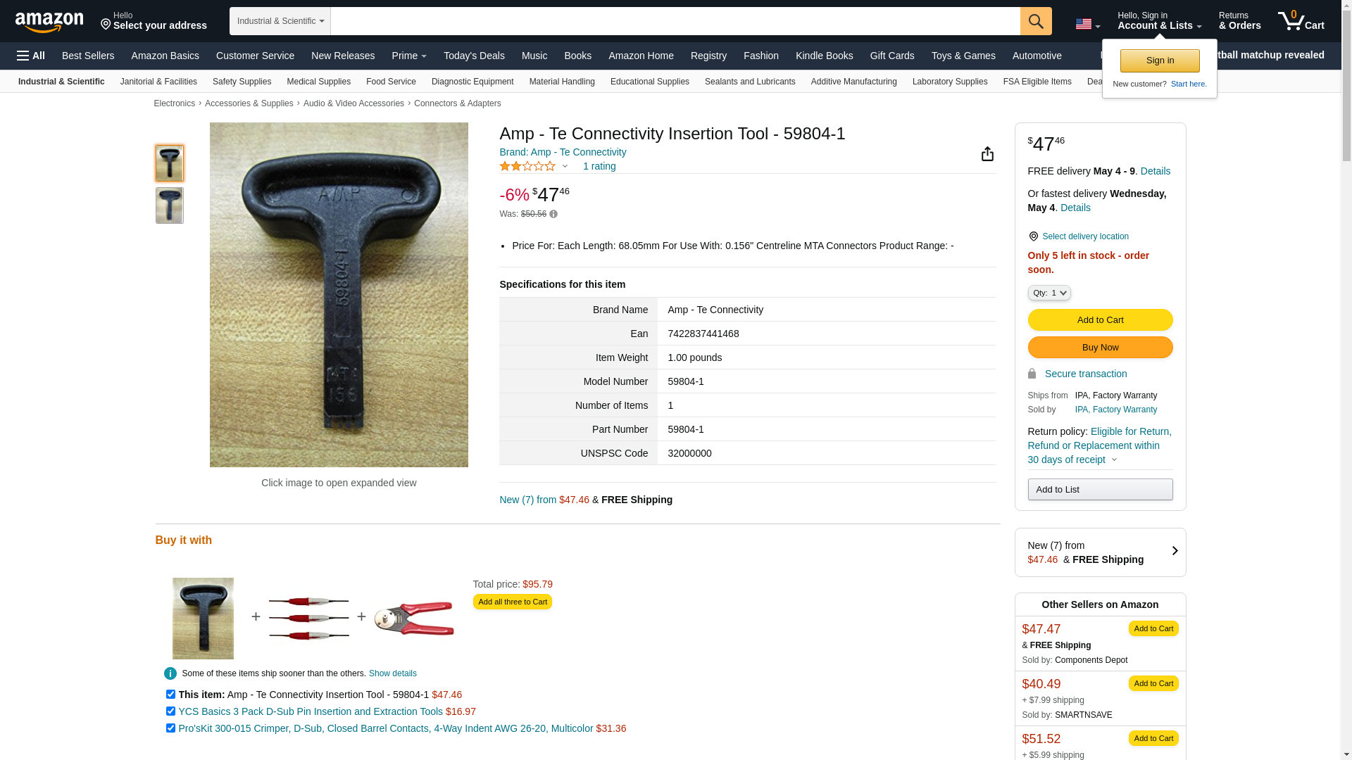 ![]() TME | 59804-1 | 1 | 1 | 1 @ $39.63, 3 @ $37.04 | |