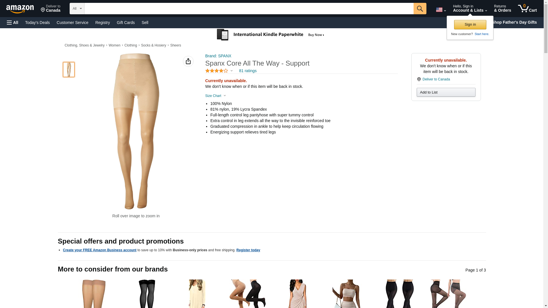 The SPANX? sheer collection extends Spanx's renowned slimming technology from the tummy to the toes. These support sheers feature innovative technology that provides graduated compression throughout the leg for improved circulation and all day support. Sheer pantyhose with super tummy control. Graduated compression in ankle for circulation flow. Smoothes tummy, hips, thighs and rear. Fits beautifully through legs, knees and ankles. Non-binding waistband for comfort. Cotton gusset, wear as underwear. As seen on Oprah! Imported. 81% Nylon, 19% LYCRA? elastane. Size: D; Height: 5'0 - 6'0; Weight: 165 - 220.