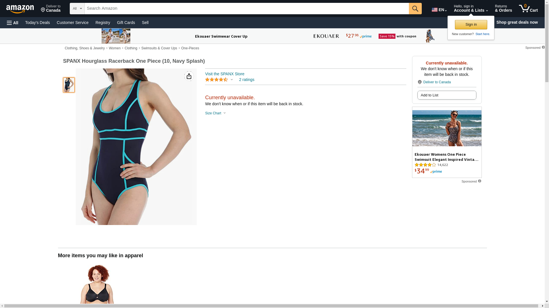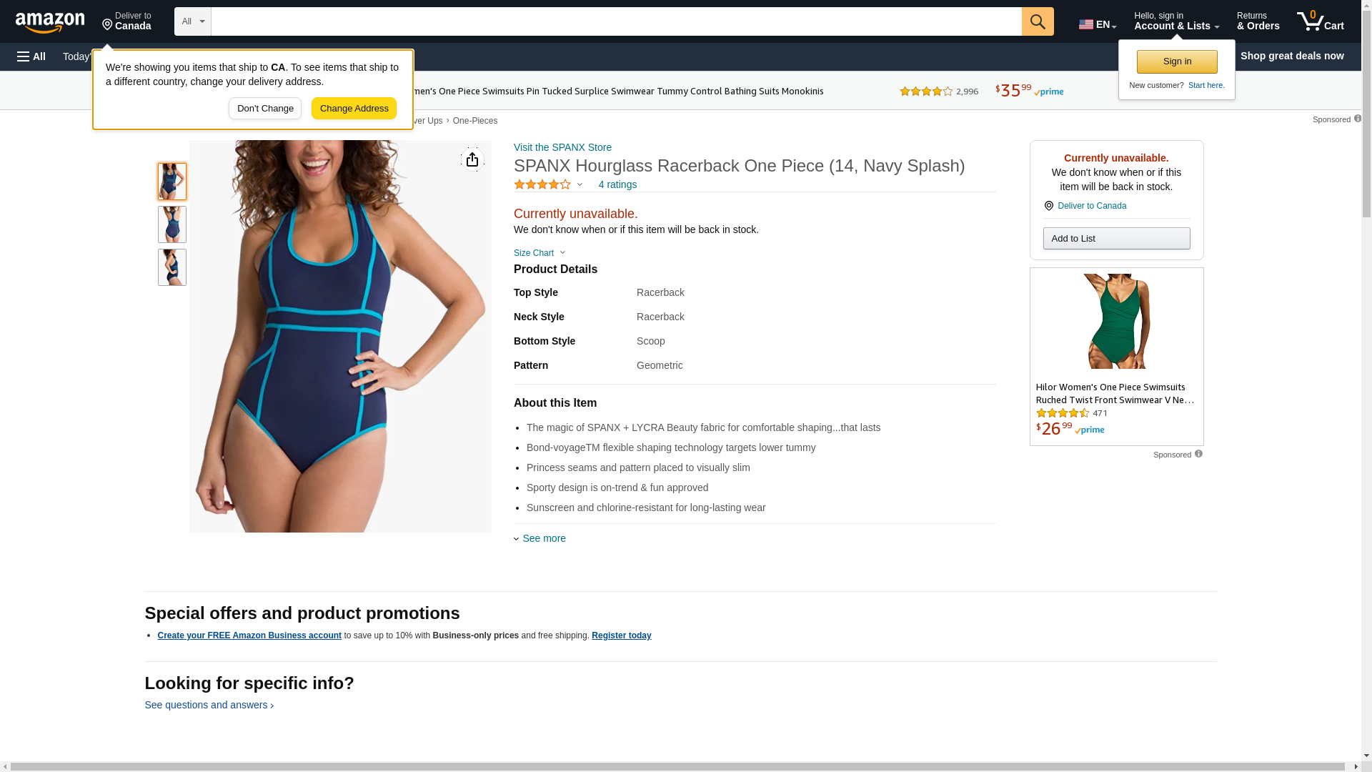 SPANX Hourglass Racerback One Piece Swimsuit (6, Navy)